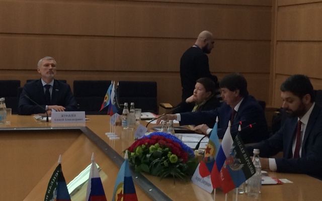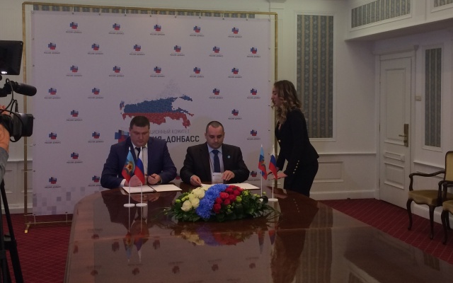 В начале заседания состоялась церемония подписания соглашений об установлении побратимских отношений между городами и регионами России и Донбасса.