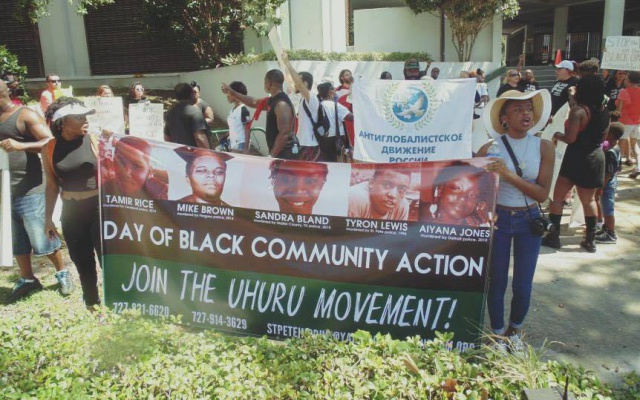 9 августа в городе Санкт-Петербурге в штате Флорида (США) прошла марш-демонстрация представителей чернокожих общин против полицейского произвола и насилия. Общественные организации, лидеры общин, церквей, представляющие африканское население, а также все солидарные с ними граждане, вышли на улицы с плакатами и лозунгами в день годовщины смерти чернокожего подростка Майкла Брауна, жестоко убитого полицией в Фергюсоне.