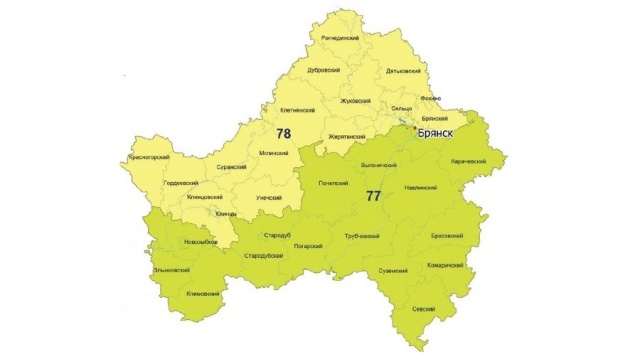 Схема одномандатных избирательных округов на территории Брянской области по выборам депутатов Государственной Думы РФ: Брянский №77 и Унечский №78, число избирателей для одного округа - около 500 тысяч.