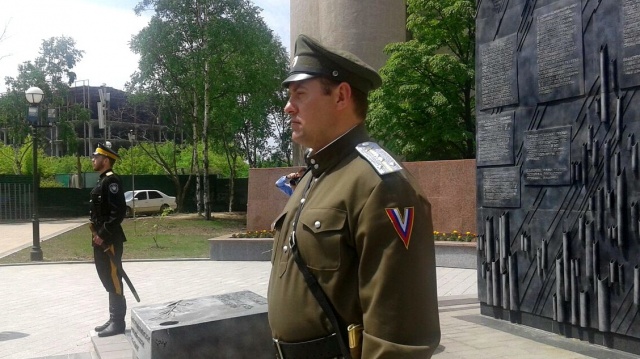 Возложение цветов к памятнику возле Дома Молодежи (г. Владивосток)