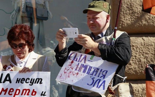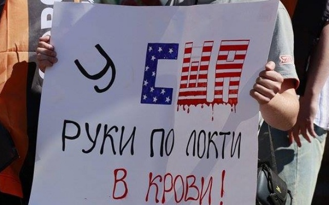 Одним из лозунгов акции был: "США – палач мира"