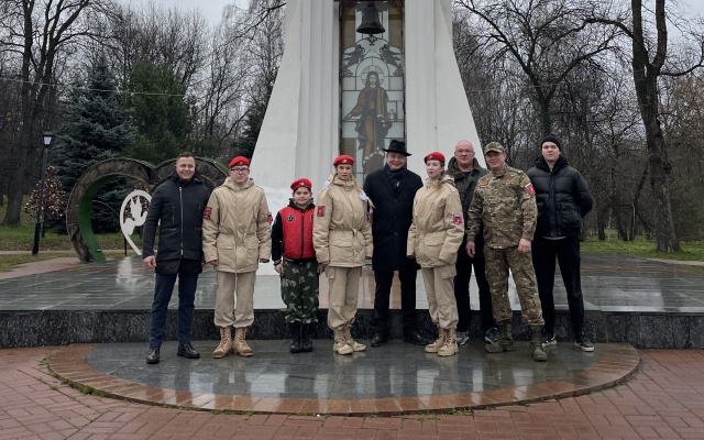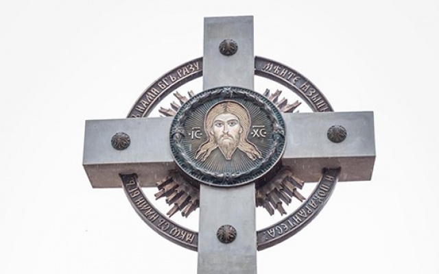 Памятник на территории Кирилло-Афанасиевского монастыря открыт ровно два года назад. Скульптурная композиция представляет собой совершенно новый творческий взгляд на подвиг наших предков: крест, Спаситель и вооруженные воинов у креста – все это словно передает нам главные слова, с которыми шли ополченцы – "За веру православную и Русь святую!".