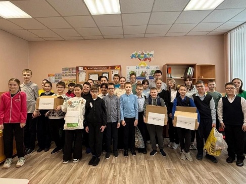Ученики средней школы № 143 г. Новосибирска передали в Клуб избирателей депутата Законодательного Собрания от партии "РОДИНА" Вячеслава Илюхина гуманитарную помощь, которую они собрали для наших воинов, выполняющих задачи специальной военной операции.