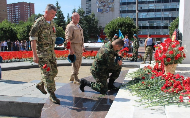 Ветераны ВДВ – члены регионального отделения партии "РОДИНА" и их соратники – почтили минутой молчания память павших воинов и возложили цветы к Вечному огню у горельефа Скорбящей Матери-Родины на площади Славы областного центра.