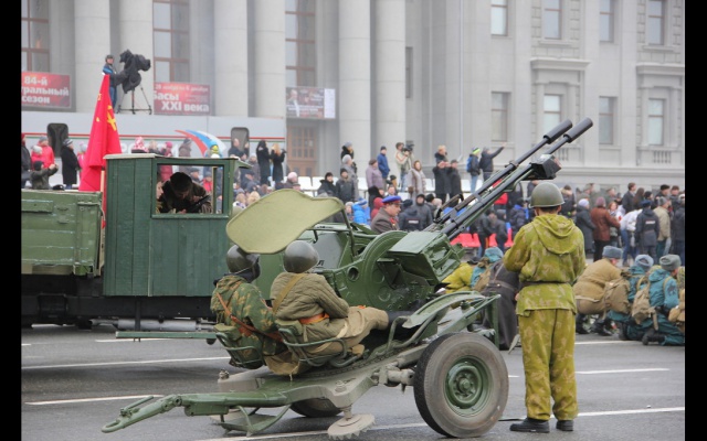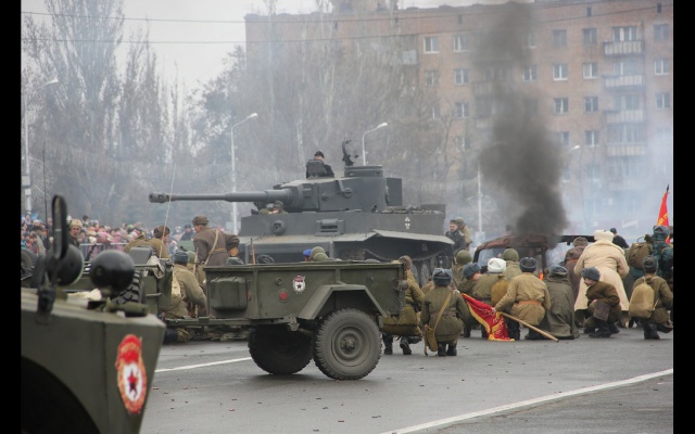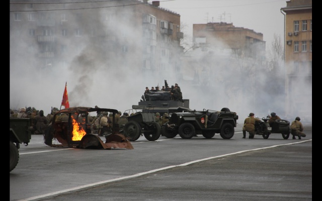 После прохождения парадных расчётов, был проведён парад военной техники времён ВОВ и масштабная реконструкция военного сражения "Битва за Москву", организованные патриотами самарского клуба "Они сражались за Родину".